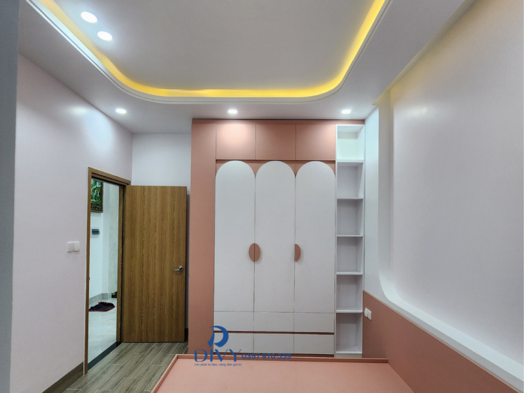 Các phòng ngủ phụ được thiết kế đơn giản nhưng đầy đủ tiện nghi. Một phòng sử dụng tông màu hồng nhẹ nhàng, phù hợp cho trẻ nhỏ hoặc phòng khách.